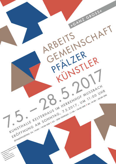 In der Ausstellung "Ganz groß" zeigt die APK ein Pendant zu ihrer kürzlich beendeten Ausstellung "Kleine Größen" im Museum Pachen, Rockenhausen. Die Arbeiten der ausstellenden Künstler haben eine eigens eingesetzte Jury durchlaufen und repräsentieren einen Querschnitt der Mitglieder, die sich mit dem großen Format auseinandersetzen.