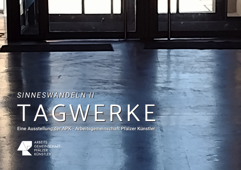 Die Arbeitsgemeinschaft Pfälzer Künstler stellt im Kunsthaus Frankenthal ausgewählte Arbeiten von 12 Mitgliedern vor, deren Exponate das Thema "SINNESWANDELN II / TAGWERKE" facettenreich und in unterschiedlichen Techniken bearbeitet haben.
