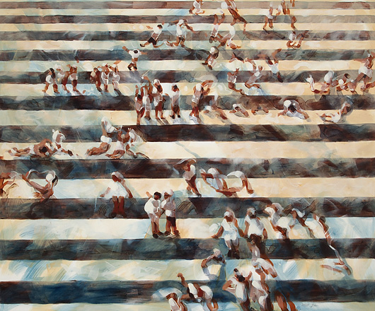 Reine Malerei genügt sich selbst. Reine Malerei ist die ideale Verbindung von Material, Werkzeug und Verfahren: in einem glücklichen Augenblick erzeugt ein einziger Pinselstrich ein malerisches Element, das sich in ein Kontinuum einfügt und von dort, also aus diesem Gefüge heraus, dem Betrachter durch Andeutungen in Wahrnehmungswelten führt. Reine Malerei benutzt ein Bildmotiv und einen Inhalt als Vorwand, um sich selbst zu präsentieren. An der Figur, der menschlichen Gestalt etwa, die sich in unserer Wahrnehmung sehr differenziert eingeprägt hat, findet die reine Malerei die geeignete Grundlage, die ideale Spielwiese, um sich voll zu entfalten. Im fernöstlichen Kulturraum finden wir eine malerische Tradition, die aus der Kalligraphie geboren wurde. Das Motiv des im Wind bewegten Schilfrohrs ist ein besonders herausragendes Beispiel: jahrelanges Üben ging voraus, um eine perfekte virtuose Darstellung mit sehr wenigen Pinselhieben zu erzeugen. Diametral entgegengesetzt ist der heutige westliche Kunstbetrieb. Hier ist das Handwerkliche meist unangebracht - einzig die Konzeption zählt. Damit stehen wir immer noch oder wieder unter den Anwürfen Platons, der eben nicht die Eigenständigkeit der Malerei erkannt hat, die aus dem Zusammenspiel von Materiellem und Mentalem entsteht.