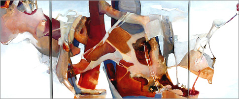 Die menschliche Figur erscheint als ein Grundthema, das mehr und mehr reduziert und abgelöst wird durch ein abstraktes Vokabular aus "biomorphen" Formen, die menschliches, tierisches und pflanzliches Sein mit einbeziehen. Frei angeordnete, unregelmäßige Formstrukturen greifen ineinander, überlagern und durchdringen sich oder werden durchlässig, öffnen sich und gewinnen Tiefe.