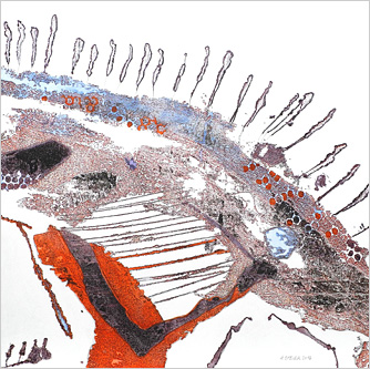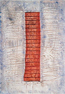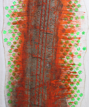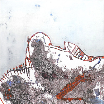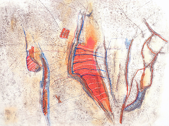 ...der Blick ist offen, kleine Fundstücke im Alltag, beim Gang in der Natur. Begegnung mit dem Zufall, die Anregung kommt in der und durch die Natur. Ich nenne es Findungen. Fundorte sind überall. Das kleine Stück Schwemmholz, ausgeblichen und rissig liegt es da. Der Überrest eines Zweiges, am Boden liegend, teilweise zerfasert, nach und nach mit der umgebenden Erde eins werdend. Ein handflächengroßes flaches Metallstück, stark angerostet mit einem Rest von Emaille - ich halte inne - Da ist das von Fluginsekten vor langer Zeit gebaute Wabengebilde, das dann von diesen aufgegeben und sich und dem natürlichen Zerfall überlassen wurde. Es liegt zum Greifen nah... und wird neu verbunden...