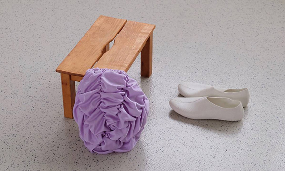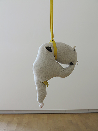 Tänzerische Bewegungen werden durch die ungeformte Leibesfülle der Wesen konterkariert. Überhaupt fällt auf, dass eine aufrechte Haltung der zoomorphen Formen wegen der Fragilität der Extremitäten nicht möglich ist. Die Gesichtslosigkeit der Gebilde, die wie biologische Präparate angelegten Zeichnungen mit Zellen-, Gitter- und Schwanzstrukturen geben sich naturwissenschaftlich objektiv, die Plastiken dagegen provozieren Widersprüchliches und sind Emmanationen einer im Inneren der Künstlerin verborgenen Eigenwelt. Sie ist nicht immer eindeutig und gibt sich vielmehr komplex, wie die Verwendung eigentlich poetischer Dimensionen versprechenden Verpackung der Plastiken wie Plüsch und Stoff zeigt. Dagegen steht die gegensätzliche Verwendung von Materialien wie Draht als Verband, der den Stoff verletzt statt zusammenfügt. Dies erinnert eher an eine Poesie des Schreckens. Die Wirkung der Oberfläche ist ins Gegenteil verwandelt. Nach der Kunsttheorie von Joseph Beuys sollen Stoffe schützen, bergen und Wärme transportieren. Bei Christine Fischer geschieht das Gegenteil: statt zu schützen und zu bergen, entblößen sie....