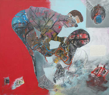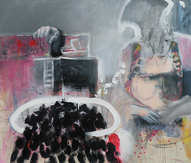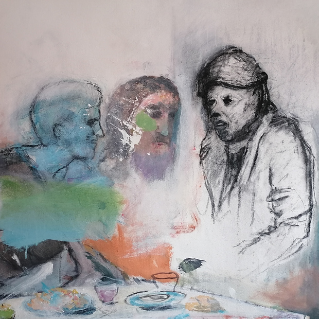 Engelbert Müller zeigt uns innere Bilder seiner Geschichten und einer Auseinandersetzung mit der Welt. Im Malprozess lotet er die Ausdrucksmöglichkeiten seines Mediums immer wieder neu aus, auf der Suche nach eigenen Wegen, seiner Sprache und seinen persönlichen Zeichen und Symbolen. Seine Bildsprache ist spontan, manchmal skizzenhaft, manchmal verdichtet in einem ständigen Prozess des Verwerfens und Suchens nach der besseren Lösung.