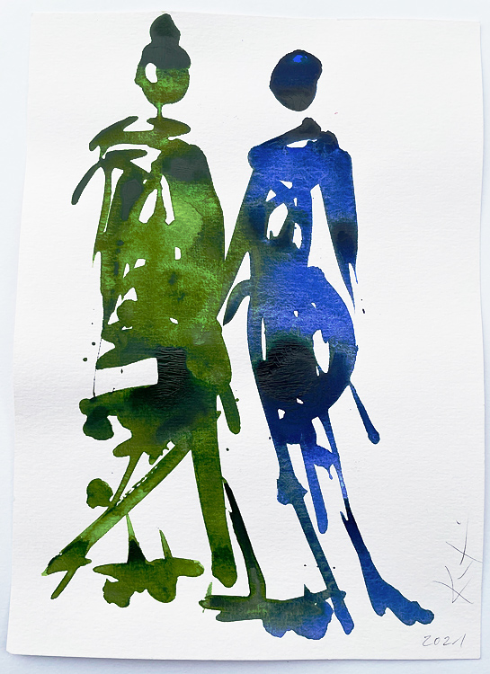 Grün, Orange, Violett - die Komplementärkontraste - ergeben sich fast nur zufällig, eben da, wo sich die Grundtöne unter der Spontaneität des Duktus vermischen. Manchmal erscheint es als wolltest Du das Postulat der Monochromie erzwingen... soviel zum Thema farbliche Gestaltung.