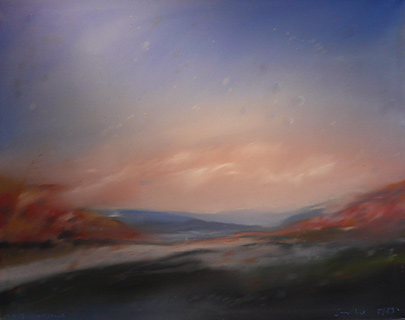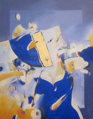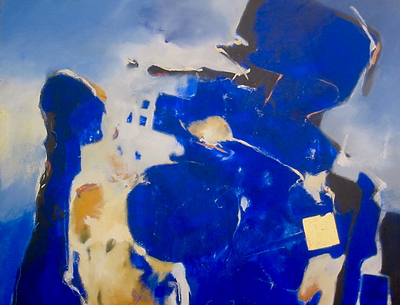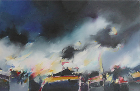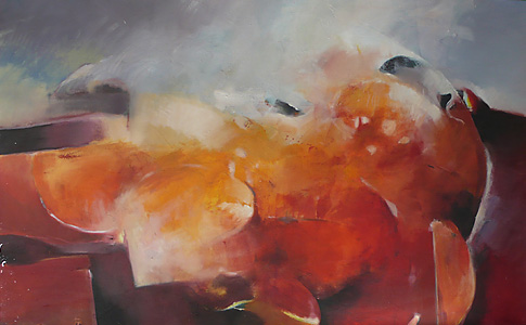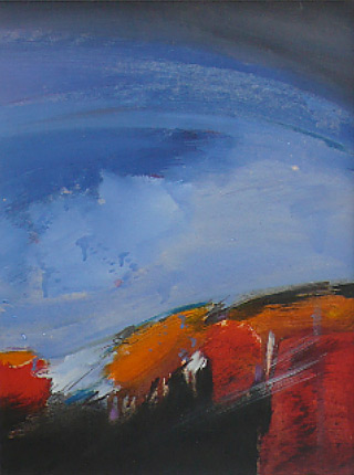 Die farbintensiven Bilder springen den Betrachter gleichsam an, so dynamisch und leuchtend ist ihre Farbigkeit in sattem Orange und kühlem Blau, die Ausdrucksintensität der Farben und der Komposition droht die Bildfläche zu sprengen. Mitunter streut oder reibt Sancho M. Gerken Sand in die Farbe, der Zufall wird nutzbar gemacht, doch das Resultat ist keinesfalls beliebig, sondern endet mit einem überlegten, disziplinierten Strich. Solche Landschaften sind eigentlich Körper, ruhendes oder in Bewegung befindliches Fleisch und verweisen gleichzeitig auf das Bruchstückhafte, das Unvollendete unserer Existenz.