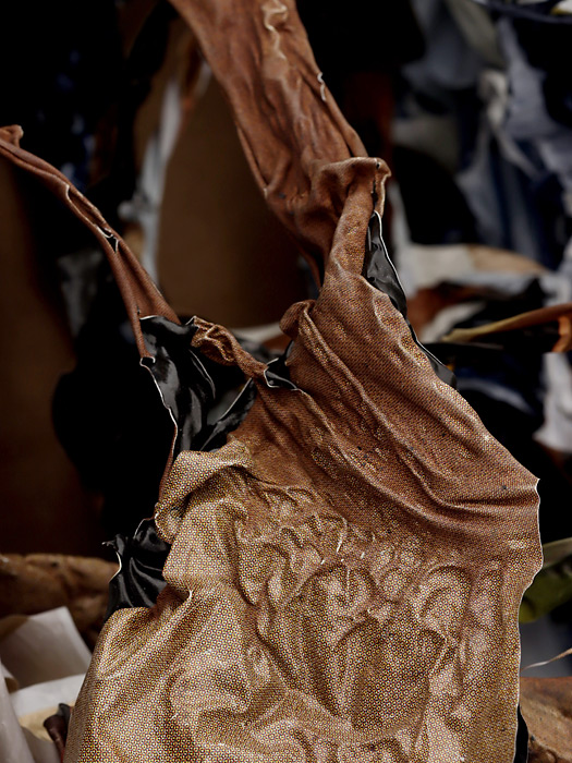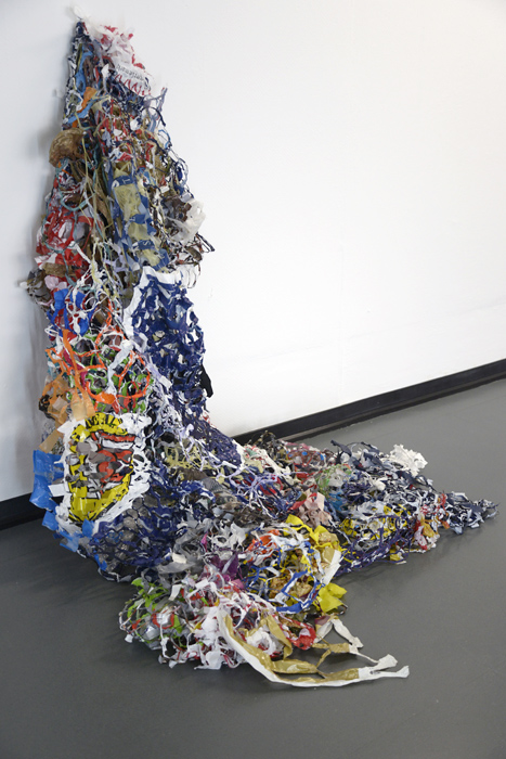In der bildenden Kunst gibt es längst keine Materialtabus mehr. Nachdem Georges Braque und Pablo Picasso 1912 damit anfingen, Zeitungsschnipsel und Tapetenstücke in ihre kubistischen papiers collés zu kleben, erodierte die Grenze zwischen kunstwürdigen und -unwürdigen Werkstoffen, zwischen "high" und "low", in atemberaubendem Tempo. Als Andy Warhol 1964 seine "Brillo Boxes" aus billigem Sperrholz zusammenbauen ließ, um damit noch billigere Verpackungskartons von Scheuerschwämmchen zu imitieren, sprach der Philosoph Arthur C. Danto noch von einer "Verklärung des Gewöhnlichen". Doch die künstlerische Verwendung an sich wertloser Materialien ist mittlerweile selbst gewöhnlich geworden. Innovation besteht nicht länger darin, "dass" ein bis dato ungebräuchlicher Werkstoff künstlerisch eingesetzt wird, entscheidend ist, "auf welche Weise" dies geschieht. Patricia Kranz arbeitet seit 2008 mit Plastiktüten, einem Material also, das per se eine große Ambivalenz in sich trägt. Die glatten, glänzenden, meist farbstark mit Firmenlogos und Markennamen bedruckten Kunststofftüten signalisieren mit ihrem Design und ihrer Warenästhetik - glatt, glänzend, hygienisch sauber - eine ungebrochen optimistische, affirmative Haltung gegenüber der Konsumkultur. Doch das Image von Plastik hat enorm gelitten, seit deutlich geworden ist, dass dieser Stoff sich in gigantischen Mengen in den Weltmeeren ansammelt, weshalb nun jede Kunststofftasche im Verdacht steht, Teil eines immensen Umweltproblems zu sein. Patricia Kranz artikuliert die Ambivalenz gegenüber ihrem Rohmaterial nicht ökologisch, sondern ästhetisch, indem sie es durch die künstlerische Bearbeitung so sehr transformiert, dass seine ursprüngliche Form und Funktion nur noch erahnbar sind. Durch Zerschneiden, Erhitzen, Flechten, Stauchen, Falten und so weiter transformiert sie die Tragetaschen in fremdartig erscheinende skulpturale Wand- und Bodenobjekte, die ihr Ursprungsmaterial nur noch bei genauerem Hinsehen zu erkennen geben.