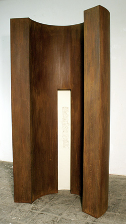 Durchdringungen und Verbindungen von Materialien und Formen mit unterschiedlichen Strukturen bestimmen sowohl die Plastiken als auch die Papierarbeiten. Schwere und Leichtigkeit entwickeln eine spannungsvolle Wechselbeziehung.