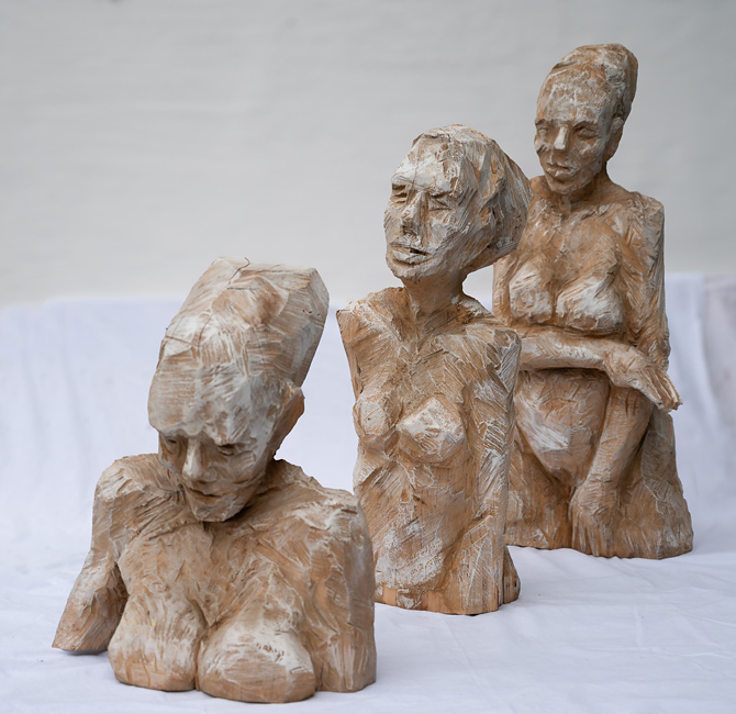 Meine Skulpturen sind zurzeit Schwerpunktmäßig aus Holz. Mich reizt z.B. die Gestalt eines bestimmten Baumstamms, weil ich darin eine menschliche Form erkenne. Meine Vorstellung von ihr lässt mich die ersten Schnitte mit der Motorsäge setzen. So beginnt ein spannungsgeladener Prozess, in welchem mich vor allem das Verhältnis reizt zwischen dem Material des Baums, seinem Volumen, seinen Flächen und Linien und meiner Idee. In diesem Prozess gibt der Baum den Ton an.