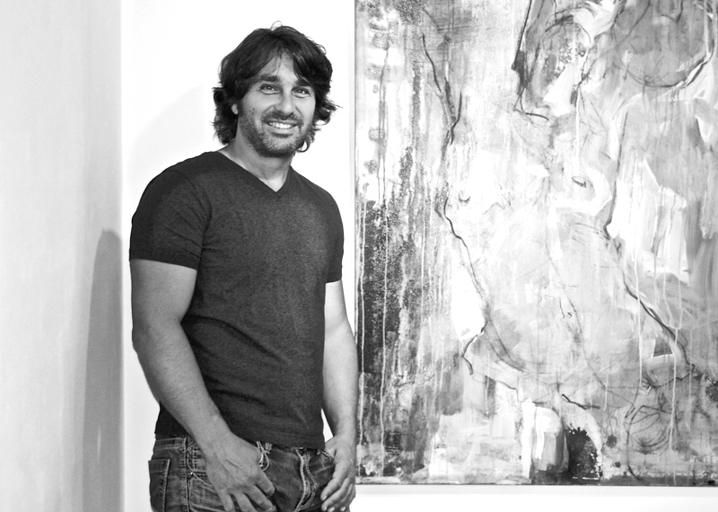 In der Malerei ist mein Ausgangsmaterial die leere Leinwand in unterschiedlich großen Formaten. Aber auch hier suche ich der menschlichen Gestalt Ausdruck zu verleihen. Meine Werkzeuge sind dabei Pinsel, Farbrollen und dergleichen. Meine Ausdrucksmittel sind Wasser, Acrylfarben, Bitumen, Kohle und anderes mehr. Räumlichkeit und Volumen entstehen durch die Interaktion von Fläche und Linie.